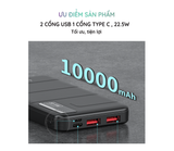 Pin Dự Phòng Lanex Lp15 Abs + 2 Cổng Usb 1 Cổng Type C 3.0a Pd Qc3.0 22.5w 10000mah Đèn Led
