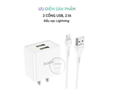 Bộ Sạc Nhanh Hoco C89 2 Cổng Usb Lightning 2.1a Dài 1.0m