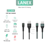 Cáp Sạc Nhanh Lanex Ltc - N12l Dây Dù Có Led Lightning 3.0a Dài 0.25m